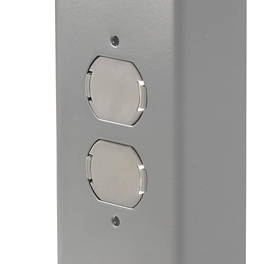 - Removable duplex knockouts on front and rear for installation of either a hard wired electrical outlet or an optional plug-in outlet (sold separately)