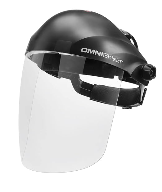 - Professional Face Protection – For full face protection for grinding applications, the OMNIShield Professional Face Shield has a high density contoured lens that is 90% thicker than a traditional face shield. This added protection is coupled with multi-axis headgear to enhance comfort and provide a personalized fit.