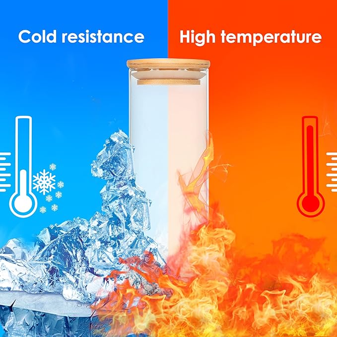 - High Quality: Glass jars made of high-borosilicate glass which features with great stability, higher hardness, heat resistance with better light transmission. And lids are made of high-quality nature bamboo. Each jar cover comes with a food-grade silicone sealant ring, more effective in preventing fluid flow and the entry of gases and bugs