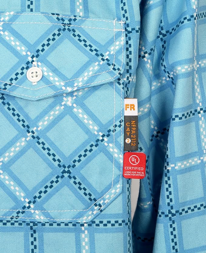 • Flame Resistant Cotton mid-weight fabric.Fabric weight is 6.5 oz/sq yd.The fabric complies with ASTM F1506 for arc flash and NFPA 2112 (ASTM F1930) for flash fire. Minimum arc flash rating (ATPV) is 8.2cal/cm2,and it complies with HRC2 rating.The garment is NFPA2112/CAT2 compliant and classified by UL.