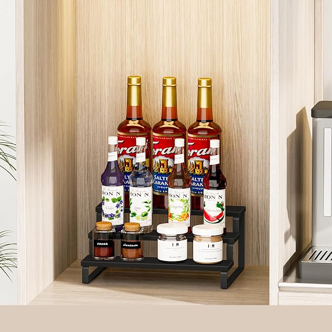 - Versatile Storage Options: Use this display stand rack to ondiments, coffee syrup bottles, spices, cans and kitchen supplies in the kitchen ; It can be used for books and decorations in the study; It can be used to store bath towels, lotions, cosmetics, moisturizers, nail polish, soap and shampoo in the bathroom. No exaggeration, it can be applied to any corner of the house.