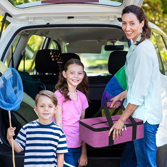 Insulated Casserole Carrier, Portable Casserole Carrier for Hot or Cold Food Lunch Tote Warmer or Cooler Bag, Lasagna Lunch Bag for Potluck Parties- Fits 9" x 13" Baking Dish-Rose Purple