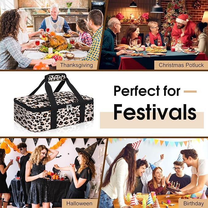 Insulated Casserole Carrier, Portable Casserole Carrier for Hot or Cold Food Lunch Tote Warmer or Cooler Bag, Lasagna Lunch Bag for Potluck Parties- Fits 9" x 13" Baking Dish-Leopard