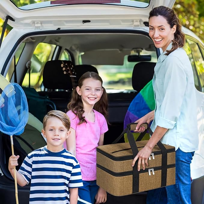 Double Insulated Casserole Carrier, Portable Casserole Carrier for Hot or Cold Food Lunch Tote Warmer or Cooler Bag, Lasagna Lunch Bag for Potluck Parties- Fits 9" x 13" Baking Dish-Coffee