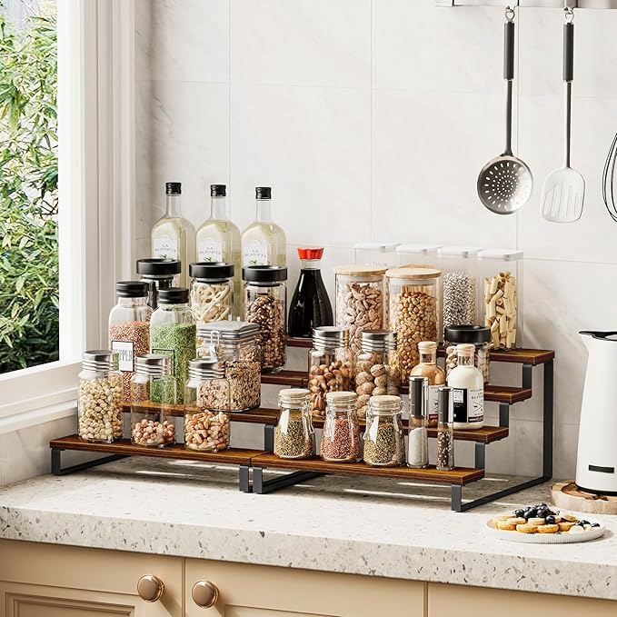 - Quick Setup & Easy Cleaning: With detailed instructions and tools provided, you can have this 4-tier spice rack assembled in 10 minutes. The wooden surface is waterproof and dust free, easy to clean, ensuring your spice rack stays looking new and hygienic.