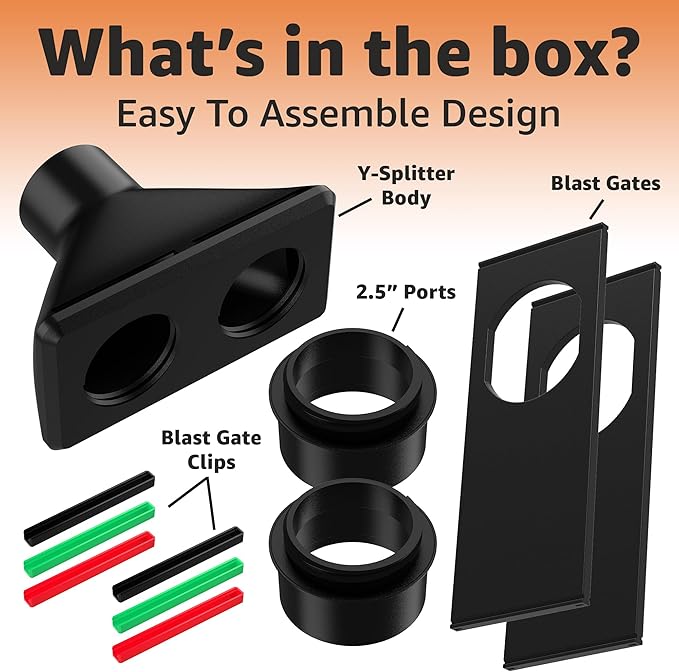 - Simple Setup: No tools needed. Easily connects to 2.5 inch vacuum hoses. Use as a shop vac tee, y connector, or blast gate.