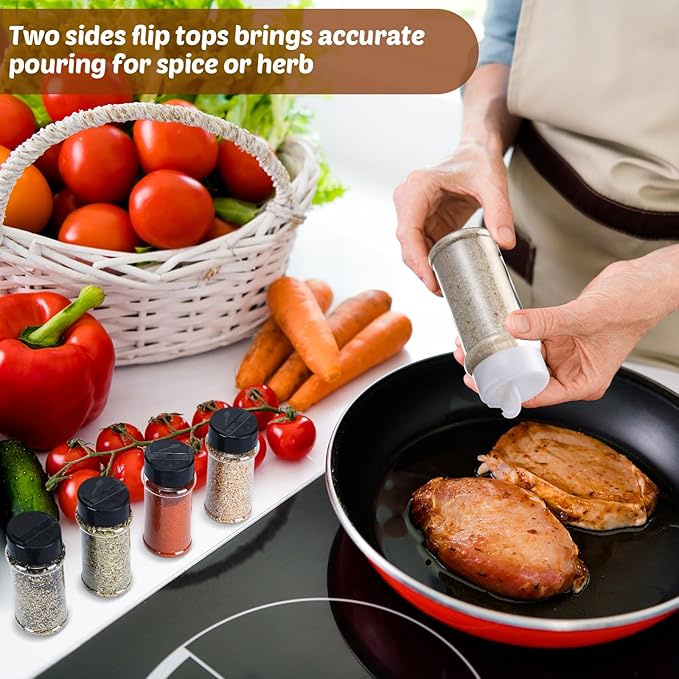 - Easy to Use and Clean: double sided open cover design makes storage and use easier and more convenient, and the cover is removable for easy cleaning; Wide mouth spice bottles make it easy to distribute or refill