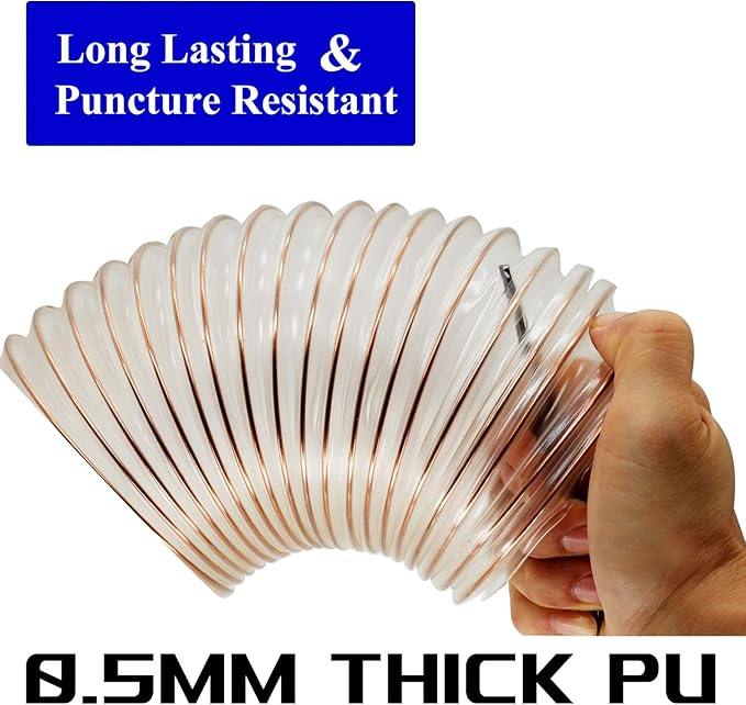 - This PU dust collection hose is constructed of heavy-duty clear PU material to withstand constant suction pressure and debris impact for long-lasting use.
