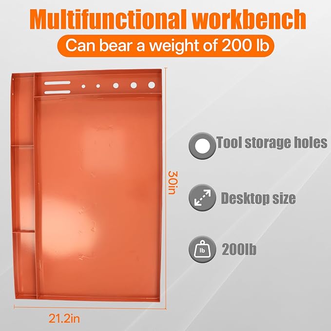 - Tool Tray That Protects & Organizes The 21.2" x 30" work surface isn’t just spacious—it’s lined with rubber padding to keep your tools scratch-free. No more clattering wrenches or dented screwdrivers; everything stays within reach, organized, and ready to use.
